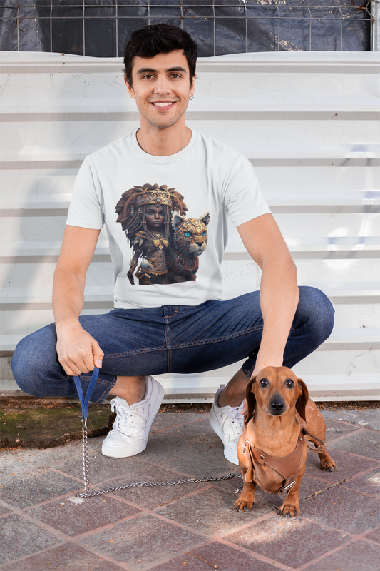 AF-pop anime African Princess with her leopard pet Jersey Short Sleeve Tee for Mythic Dudes