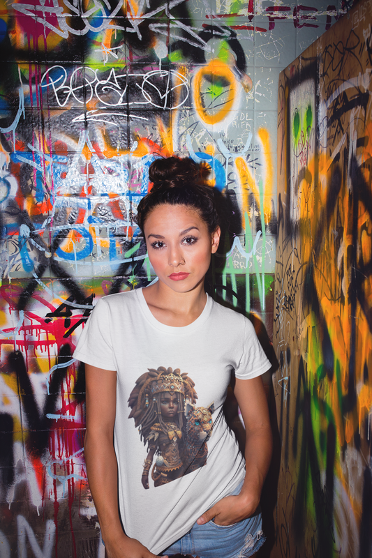 AF-pop anime African Princess with her leopard pet Jersey Short Sleeve Tee for Mythical Maidens